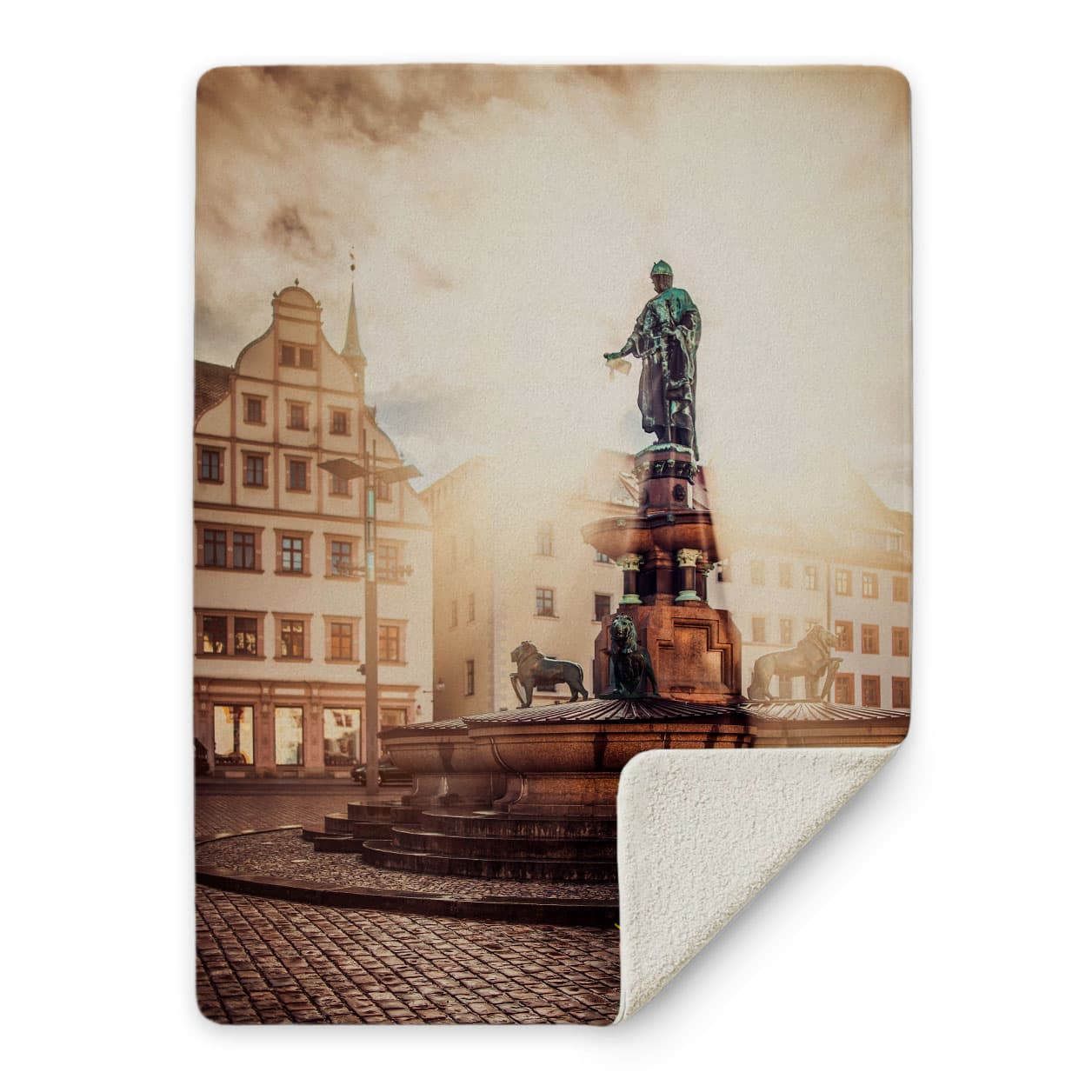 Magisches Lichtspiel auf dem Obermarkt! Diese beeindruckende Kuscheldecke zeigt den Otto-der-Reiche-Brunnen im dramatischen Gegenlicht mit spektakulären Sonnenstrahlen - ein faszinierendes Zusammenspiel von Licht und Architektur.