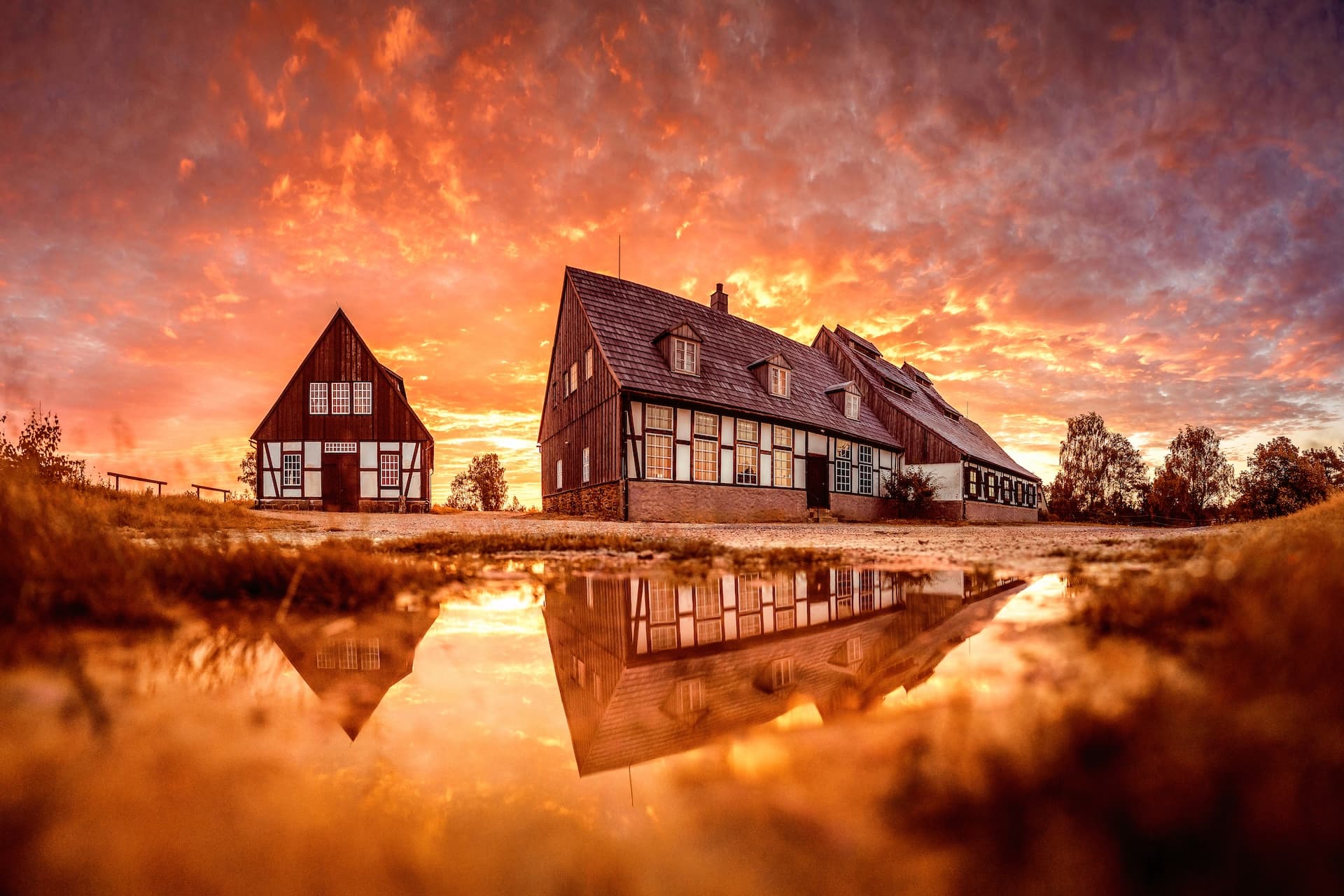 Die Geschichte: Entstanden am 21.07.2016 nach zwei Wochen Planung. Der Kater weckte an jenem Morgen früher als der Wecker – der Himmel versprach perfektes Licht. Da es trocken war, mussten 3x 20 Liter Wasser von Müldisdorf nach Freiberg transportiert werden, um die Pfütze zu schaffen. Das Bild besteht aus 10 Einzelaufnahmen (5 Spalten, 2 Zeilen) mit Weitwinkelobjektiv – als Stativ diente der Finger! Eines unserer beliebtesten Motive.