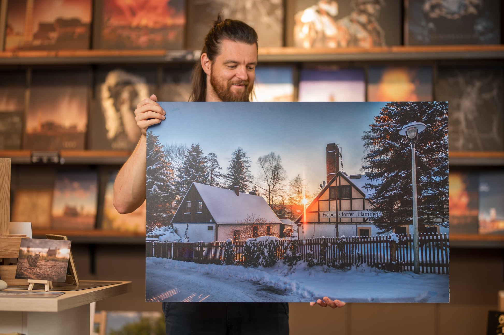 Wandbild 'Freibergsdorfer Hammer im Winter' 90x60cm 3mm Forex - B-Ware