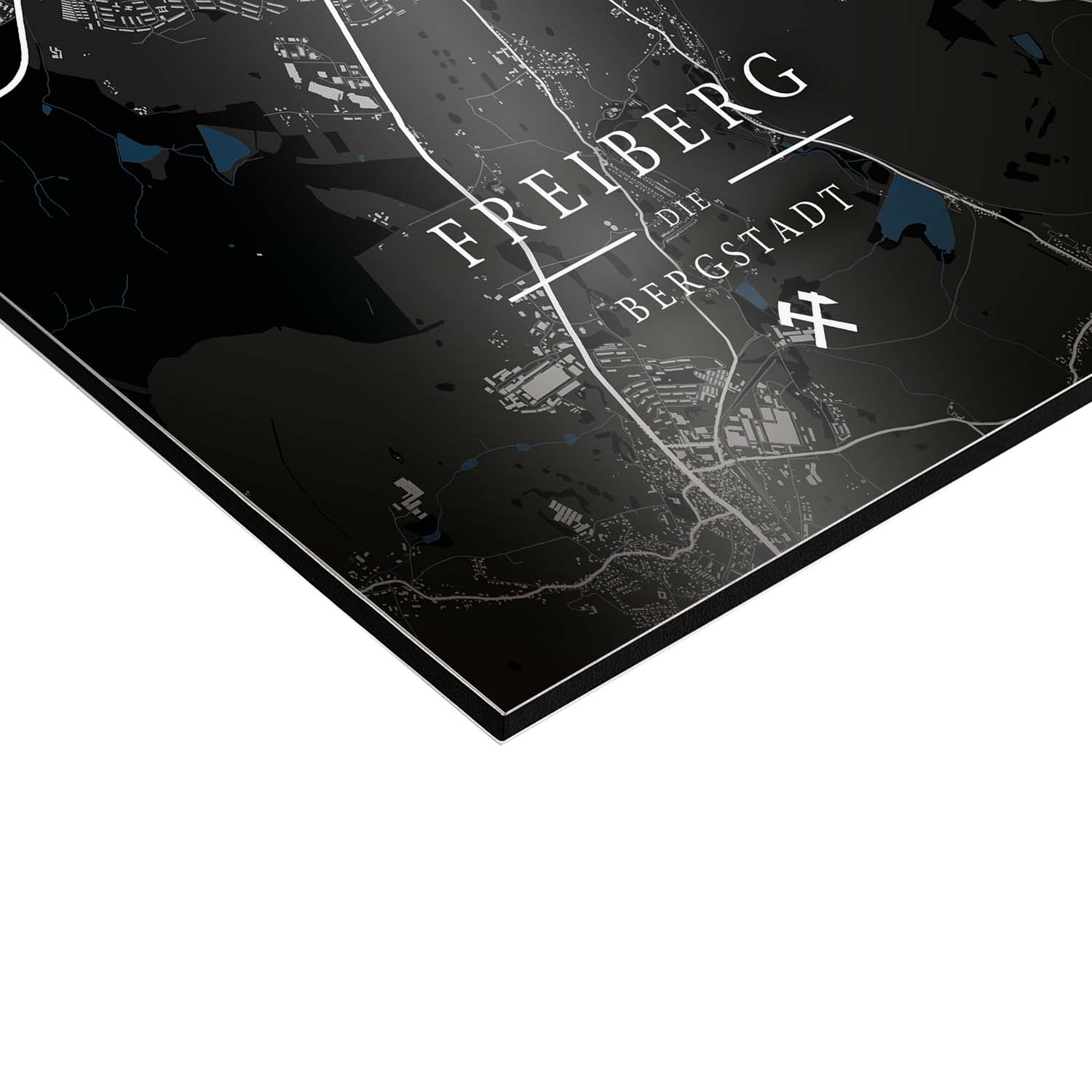 Personalisierbar: Die Karte ist auch individuell anpassbar – zum Beispiel mit einem persönlichen Ort, einem besonderen Datum oder einer eigenen Beschriftung. Schreibt uns gern an oder nutzt direkt: Wandbild 'Stadtplan Landkarte Freiberg' – personalisierbar.